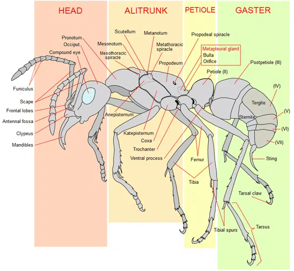 Ameisen verfügen über Antennen, beißende Mundwerkzeuge, haben viele Drüsen und einen sehr gut ausgeprägten Geruchssinn. Diese Dinge dienen ihnen zur Verständigung sowie zur Abwehr. Außerdem können sie dadurch eigene von fremden Nestkameraden unterscheiden.